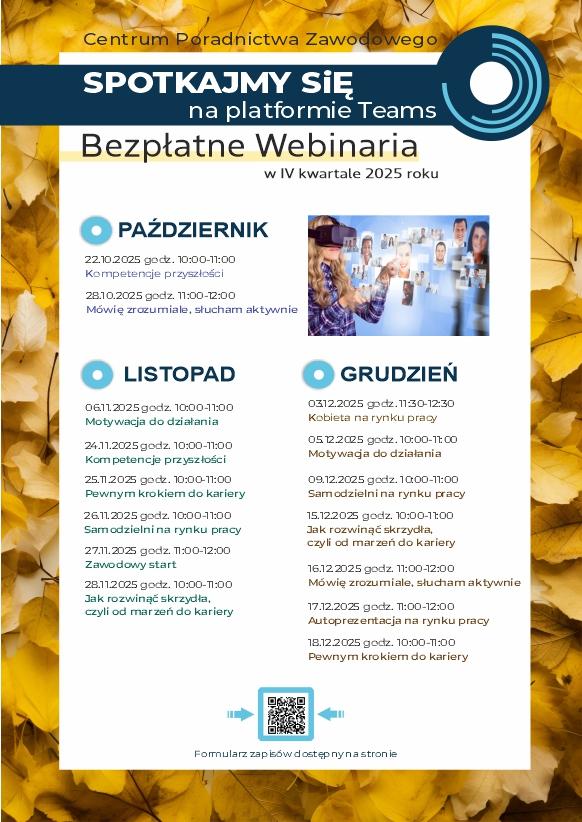 Zapraszamy do uczestnictwa w webinarach prowadzonych przez doradców zawodowych.
