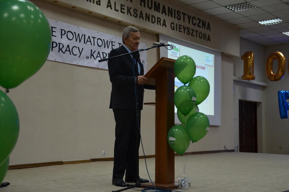 W dniu 27.03.2019 r., w siedzibie Akademii Humanistycznej im. Aleksandra Gieysztora w Pułtusku, odbyły się zorganizowane przez Powiatowy Urząd Pracy w Pułtusku, pod Honorowym Patronatem Starosty Pułtuskiego, targi edukacji i pracy. Tegorocznym targom, przyświecało hasło: „Sukces to drabina, po której nie sposób wspinać się z rękami w kieszeniach". W załączeniu zapraszamy do obejrzenia fotorelacji.