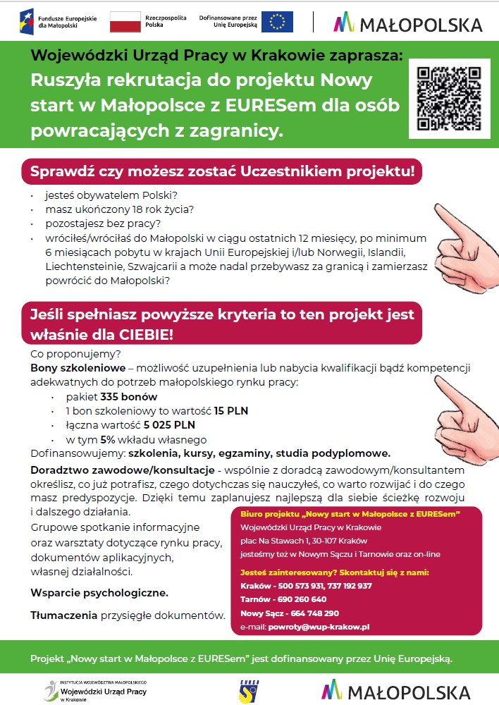 "Żyj i pracuj w Małopolsce" - projekt Wojewódzkiego Urzędu Pracy w Krakowie